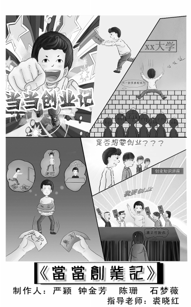 近日,由我院青年教师裘晓红指导,动漫设计与制作专业学生严颖、钟金芳、陈珊、石梦薇创作的系列漫画《当当创业记》在《光明日报》刊出。该漫画以我院积极开展大学生创业教育为背景,讲述了当代大学生主动接受创业教育启蒙、提升创业能力、参与创业实践、收获创业成果的成长故事,将在《光明日报》连续刊出。
