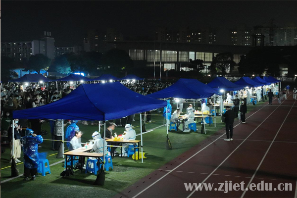 学校在田径场设立14处核酸采集点,受检师生全程佩戴口罩,以部门、学院为单位,按照有序排队、身份核验、核酸检测、有序离场的流程,在指定采样点接受了核酸采集。现场检测工作有条不紊、高效快速。截止到3月14日20时,共完成9010名师生的检测任务。