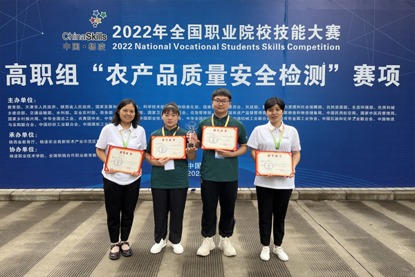 8月23日-27日,2022年度全国职业院校技能大赛高职组“农产品质量安全检测”赛项在陕西省杨凌职业技术学院举行。我校应用工程学院食品检验检测技术专业群的蔡辰聪、周静同学在赵粼、凌云两位老师的带领下,从全国各省(市、自治区)53支参赛队中脱颖而出,斩获全国一等奖。
