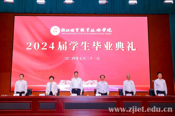 副校长林锋宣读《关于表彰2024届优秀毕业生的决定》。115人荣获“2024届浙江省普通高等学校优秀毕业生”称号,388人荣获“2024届校级优秀毕业生”称号。学校领导为浙江省优秀毕业生代表、学校优秀毕业生代表颁发荣誉证书,并为毕业生代表颁发毕业证书、赠送纪念徽章和《毕业生廉洁从业教育手册》等毕业专属纪念品,勉励全体毕业生坚定自信,一路清风,追光前行。