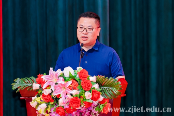 2002届计算机与应用专业校友、富境(浙江)控股有限公司总裁蔡仁杰发言。他用丰富的创业经历和生活体会,建言毕业生们要保持好奇心,终身学习;勇于行动,不怕失败;培养团队精神,学会合作;坚持梦想,不忘初心。