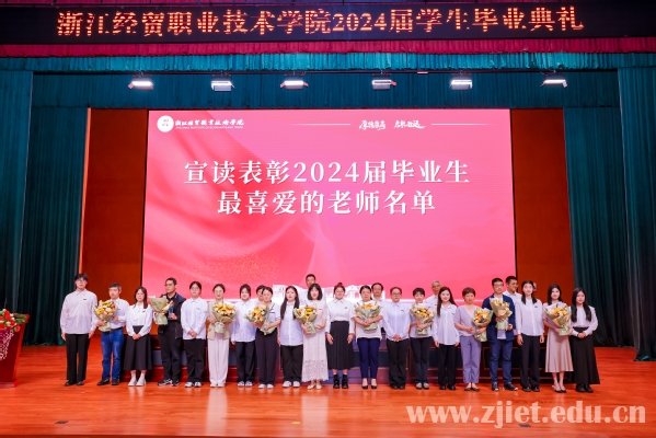 副校长蒋丽君宣读《“2024届毕业生最喜爱的老师”评选结果》。10位教师入选“2024届毕业生最喜爱的老师”名单,学校领导为入选教师颁发奖杯,学生代表上台向教师献花,向辛勤付出的老师们表达最真挚的感谢。