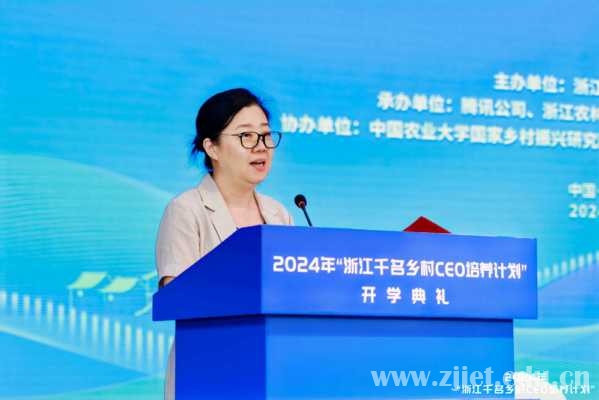 陈德泉在讲话中对浙江省农业农村厅、浙江省农学会、腾讯公司、浙江省乡村建设促进会等单位的信任和支持表示感谢,并简要介绍了学校的基本情况。他表示,学校一直高度重视乡村振兴人才培育,此次承办2024年“浙江千名乡村CEO培养计划”项目,既是积极响应“三支队伍”建设、以人才之力赋能乡村振兴的创新之举,也是学校义不容辞的使命担当。2023年,学校圆满完成了首批100名乡村CEO的培训任务,成效突出、反响良好。今年,学校将与农林大学紧密合作,力争培养出一批既擅长乡村经营与服务,又能引领乡亲迈向共同富裕的乡村振兴人才。
